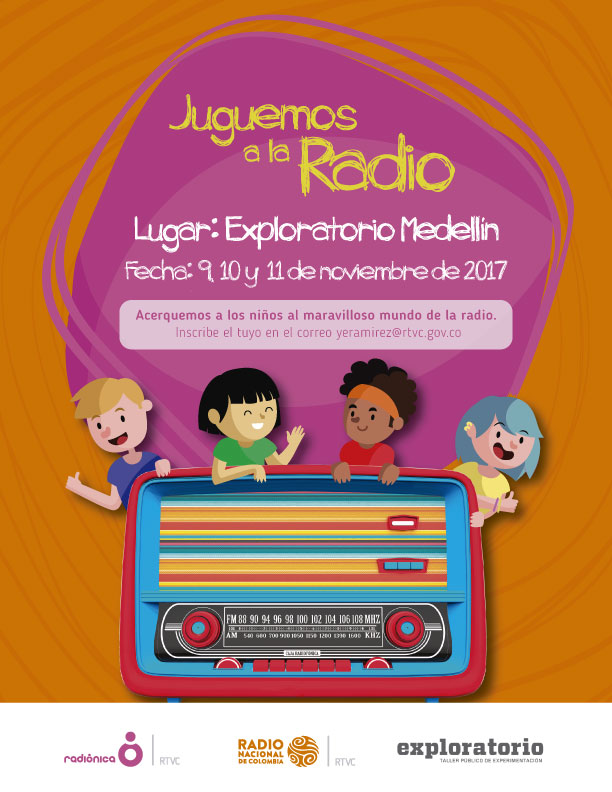 Para lo anterior, este 9, 10 y 11 de noviembre en la ciudad de Medellín, en el Exploratorio, vamos a realizar el taller llamado "Juguemos a la radio" dirigido a niños y niñas mayores de 7 años.