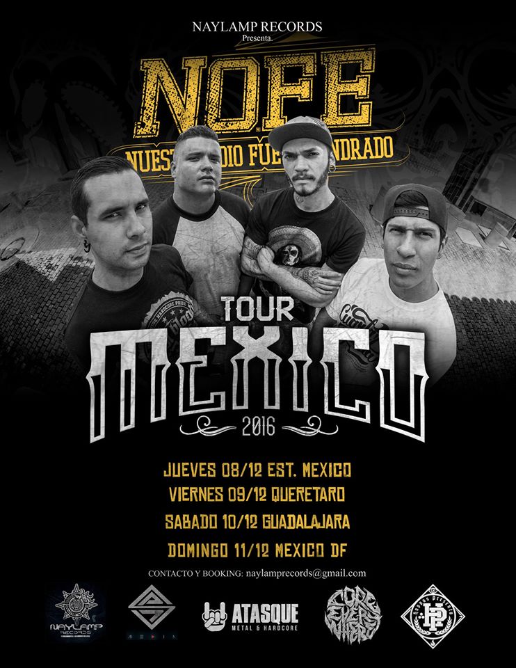 N.O.F.E. se presentará en Estado de México, Querétaro, Guadalajara y México DF, entre el 8 y el 12 de diciembre promocionando “Hecho En Colombia”, el disco que les abrió las puertas en Argentina, Chile y Perú. Pero más allá de la difusión musical y autogestión, los integrantes de la banda de hardcore/metal compartirán la música de bandas amigas para que la escena mexicana los conozca y permita a su vez, crear mercados para estos y continuar con la difusión de la música independiente.