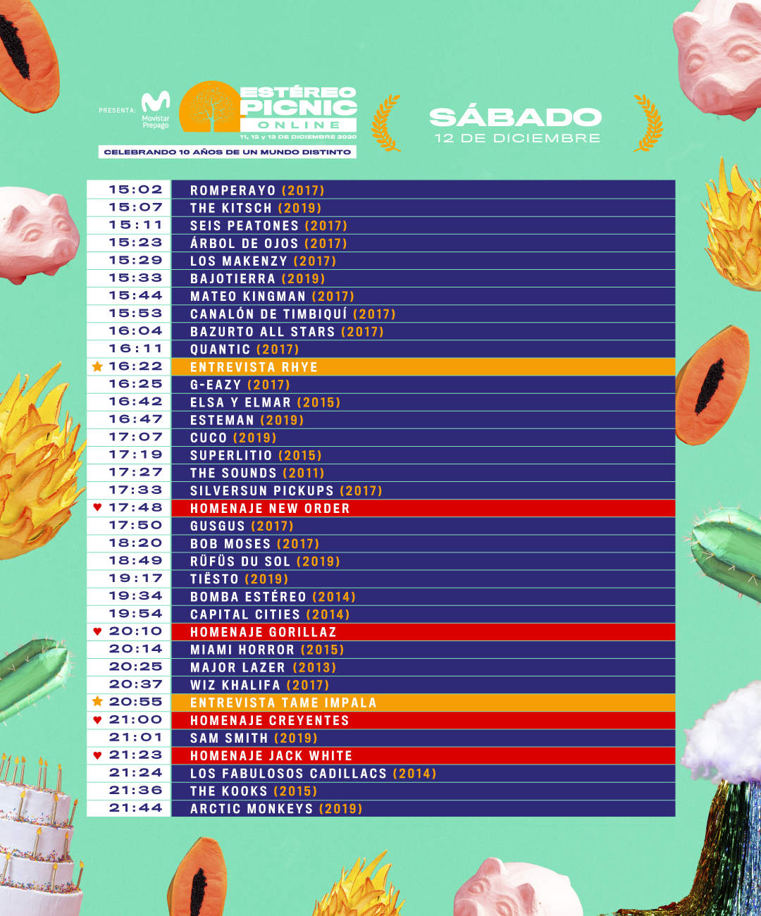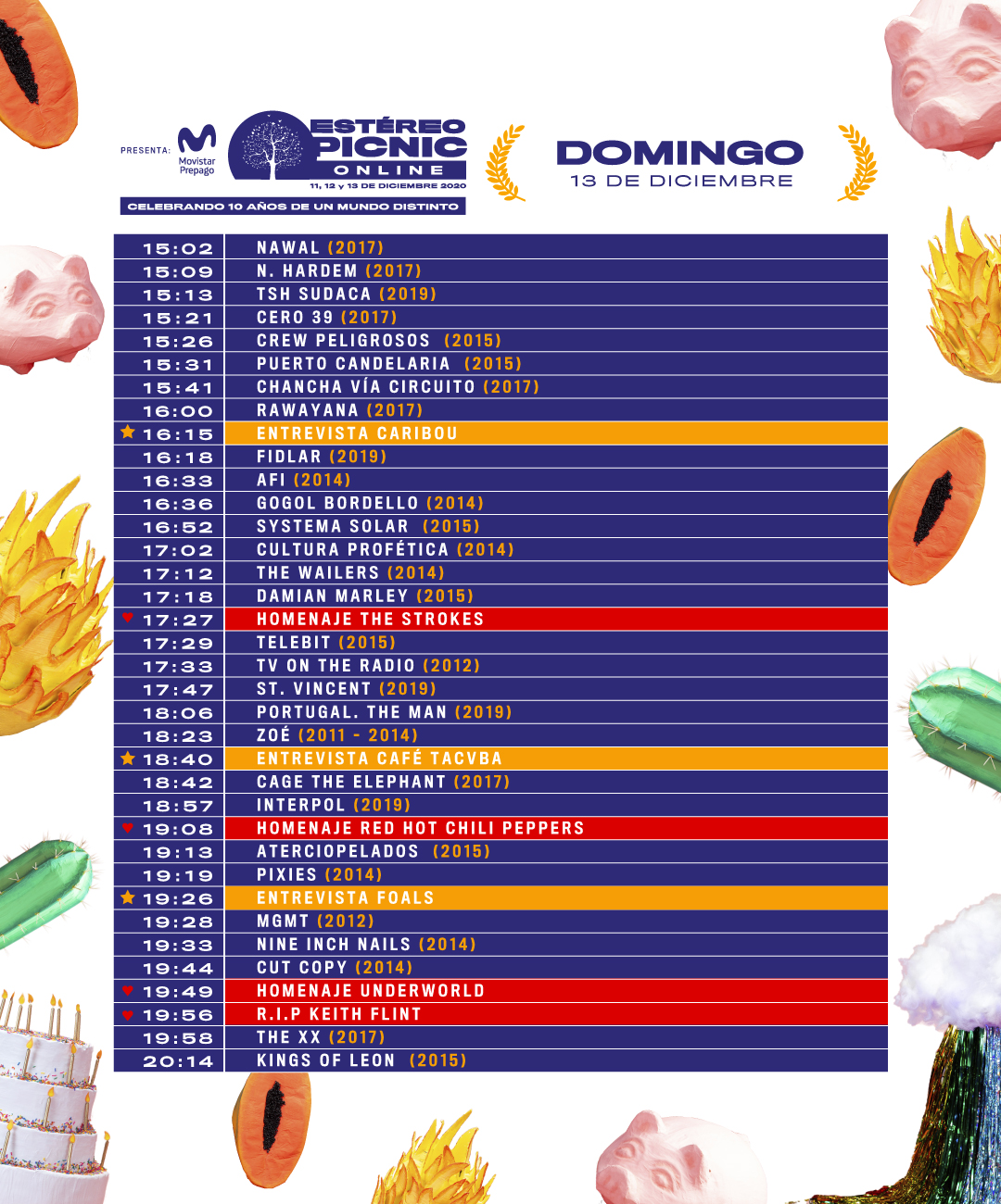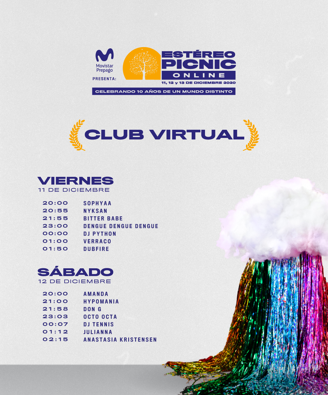 Compartimos con ustedes los horarios para que se conecten con nosotros y revivamos la efervescencia bailable que el Estéreo Picnic nos ha dado a través de estos diez años.