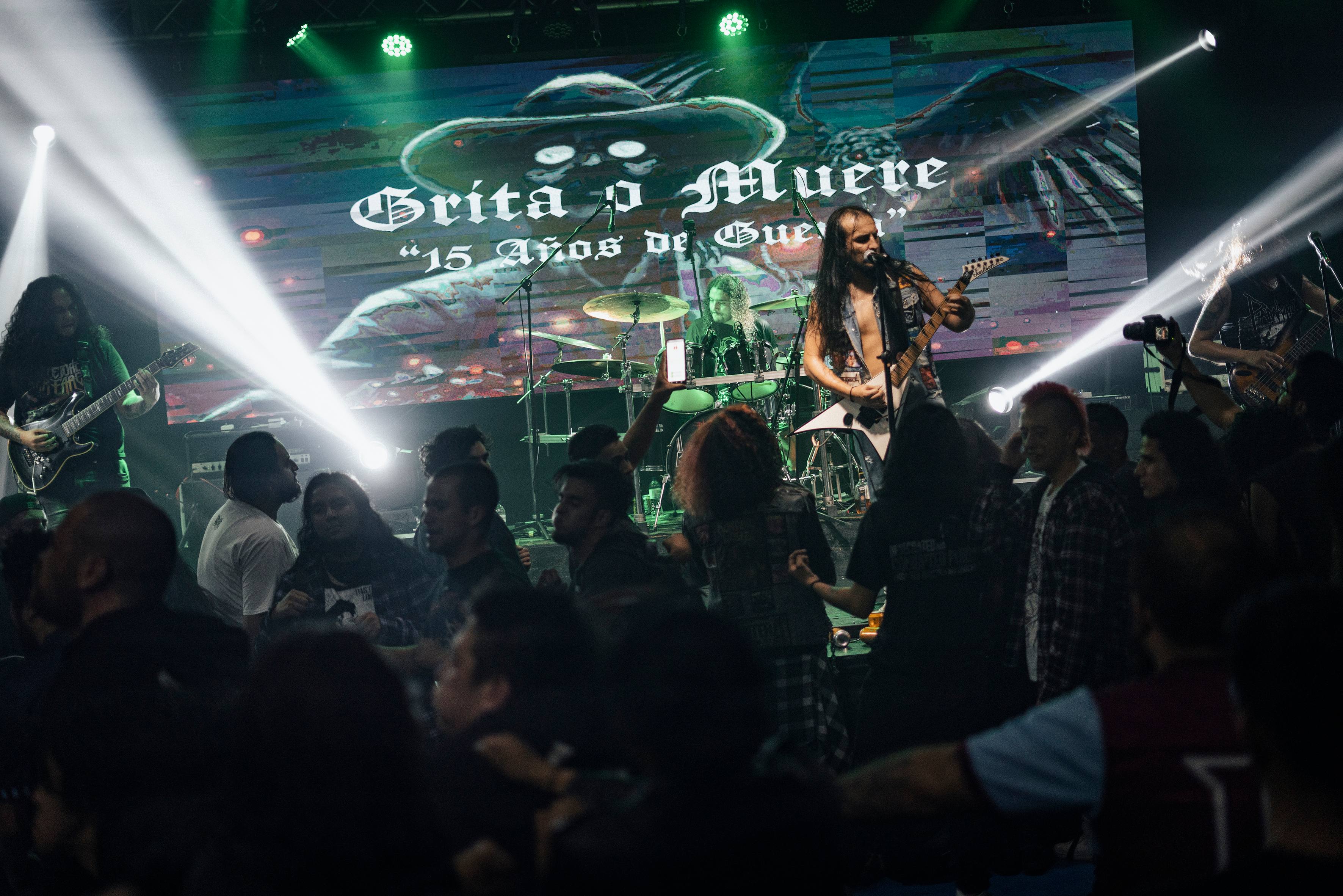 Pero Camilo desde el escenario les recordó que estaban en un concierto de metal. Las mesas pasaron al fondo, los comensales se limpiaron la salsa de la boca, pidieron más cerveza y el pogo al fin se tomó el espacio. Cuando fue el turno de Perpetual Warfare, ya el miedo pandémico había sido pisoteado y la gente se entregó al sonido.