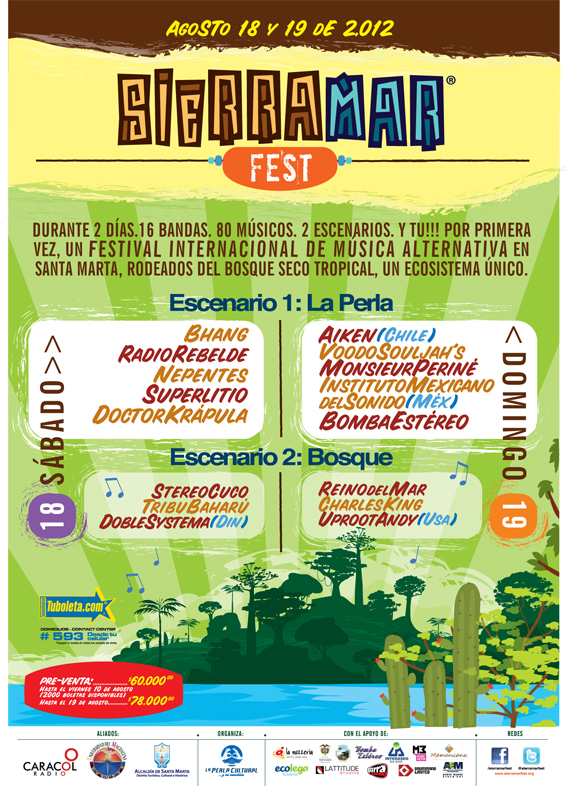 El Sierramar Fest 2012 será uno de los primeros eventos que llevará un amplio cartel de artistas independientes nacionales e internacionales a la capital del Magdalena. Agosto 18 y 19 de 2012.