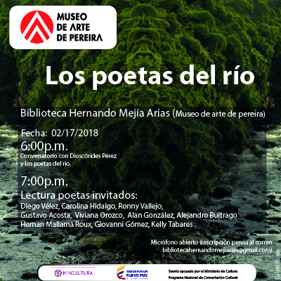 Los ríos son testigos de miles de historias, protagonistas de la unión y separación, son vías y medios, son un personaje importante en el paisaje, son héroes que hacen parte de una cultura, de una historia, del arte y de la literatura; actualmente, tendrán cabida en el Museo de Arte de Pereira, en donde ocho poetas invitados harán de una noche, algo inolvidable para la imagen que tenemos de nuestros ríos.