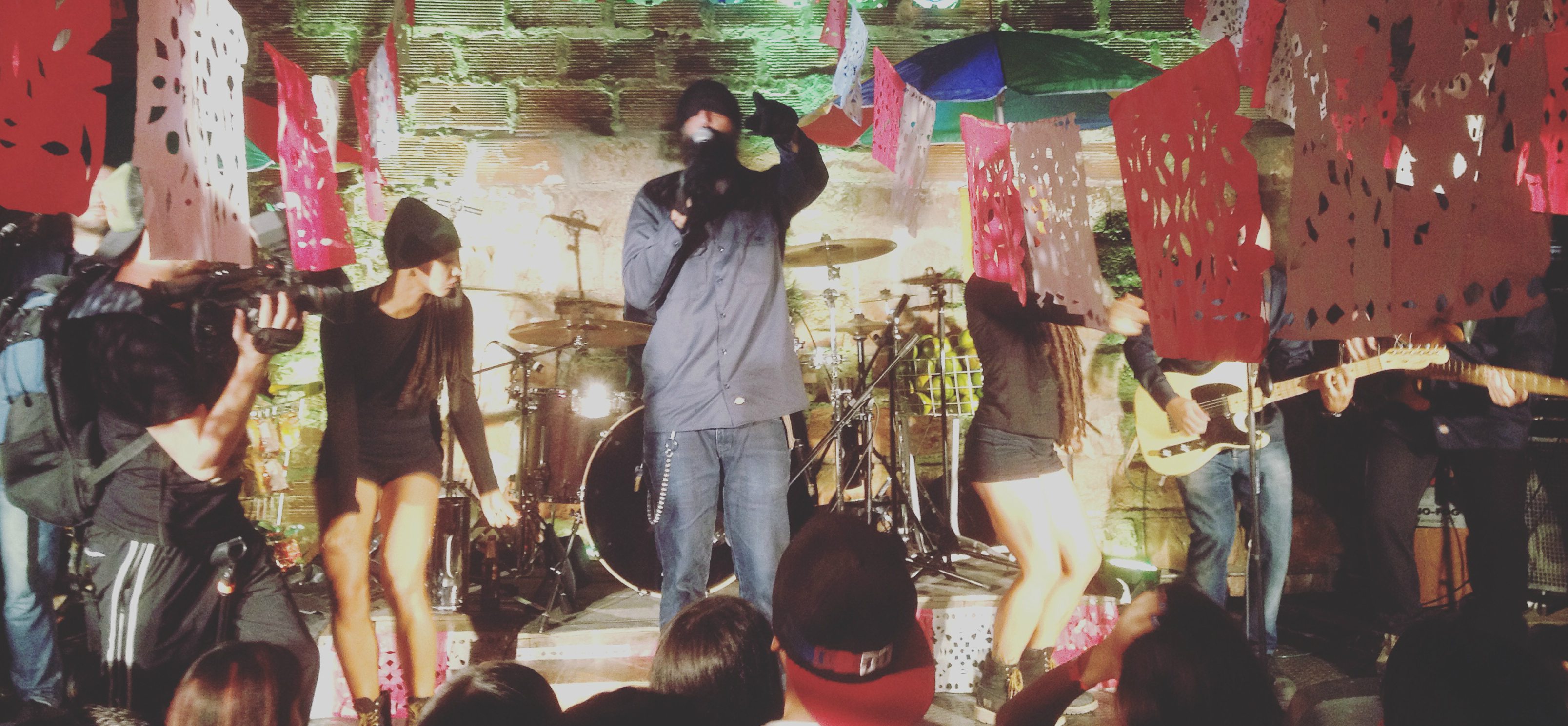 El Juanda: Lo que quisimos fue recrear la misma temática que vemos en los videoclips, que son las calles del centro, los elementos de la cotidianidad. Quisimos que tocar las canciones fuera tan divertido como ver los videos, y que la gente percibiera eso en el show.