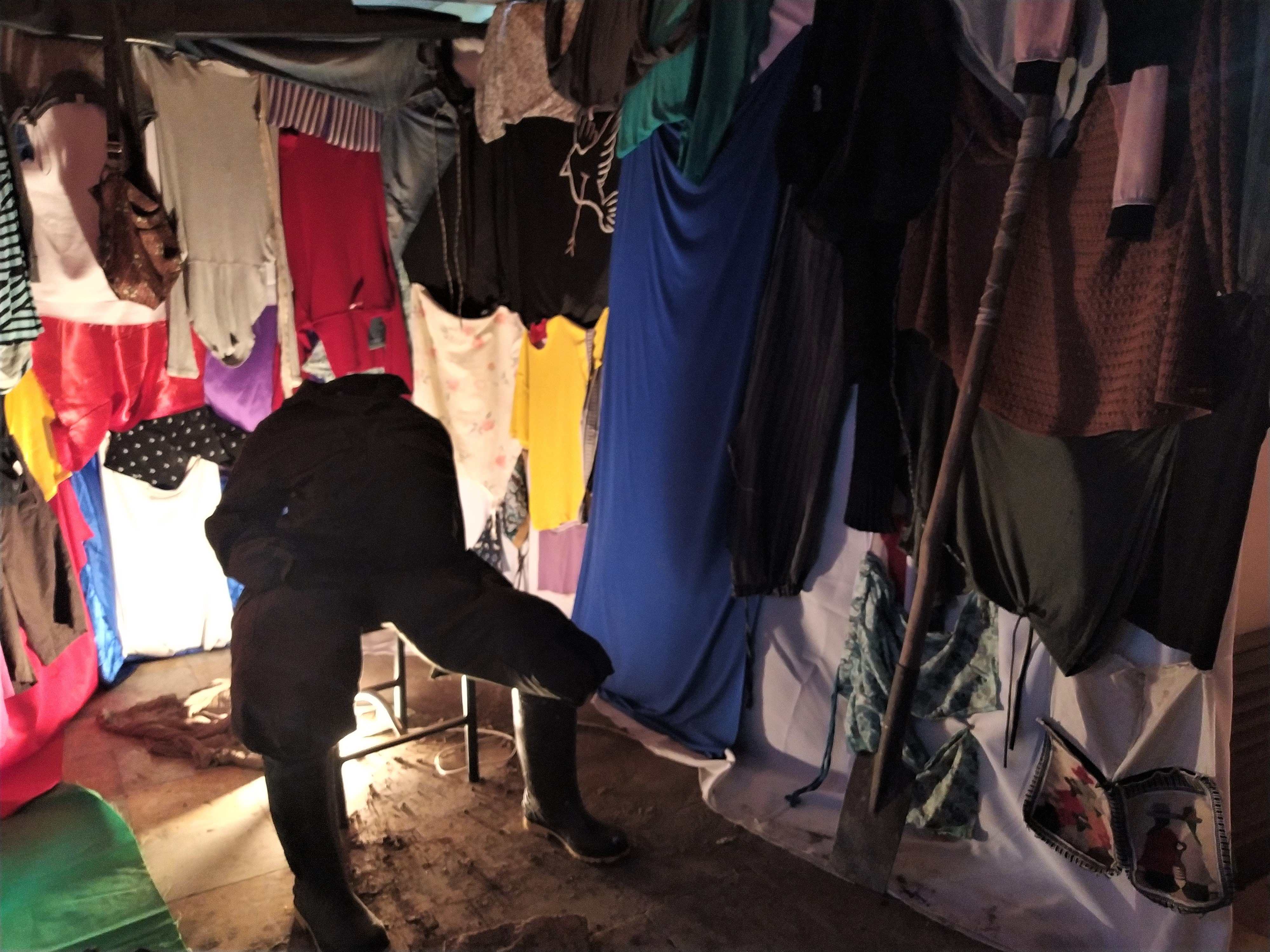 Muestra de ello, es la instalación vigente realizada por Silvia Rodríguez, voluntaria de la casa, quien diseñó una sala donde las de prendas de vestir son el paisaje de un uniforme militar que reposa en la mitad del espacio, una instalación de múltiples interpretaciones.