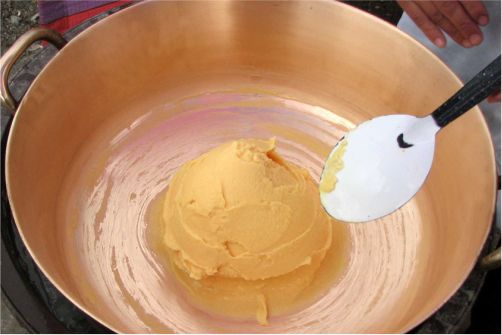 Uno de los postres más tradicionales del país se hace en Pasto y toma su forma en una gran paila de cobre. Por una reacción física, el sumo de una fruta como la mora, o una esencia como la vainilla, combinada con agua o leche, se desprende de su fase líquida para llegar al estado semisólido, ya que la paila gira alrededor de unos bloques de hielo que enfrían el metal, el cual, al tiempo, entra en contacto con el líquido y lo convierte en un helado. El solo proceso es un arte y la sensación al probarlo es inexplicable: su sabor, textura y temperatura no tiene comparación.  Pueden degustarse con un heladito de Paila frente al Parque de Santiago o en el Barrio San Ignacio, sobre la calle 15 con carreras 32 y 34.