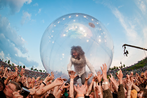 No es la primera vez que The Flaming Lips utiliza este método, desde el 2003 es común ver a Wayne Coyne dentro de una burbuja de plástico mientras que canta e interactúa con el público. También en mayo de este año la agrupación lanzó el videoclip de la canción “Flowers of Neptune 6”, en el que vemos a Coyne dentro de una burbuja de plástico en algunas escenas del audiovisual.