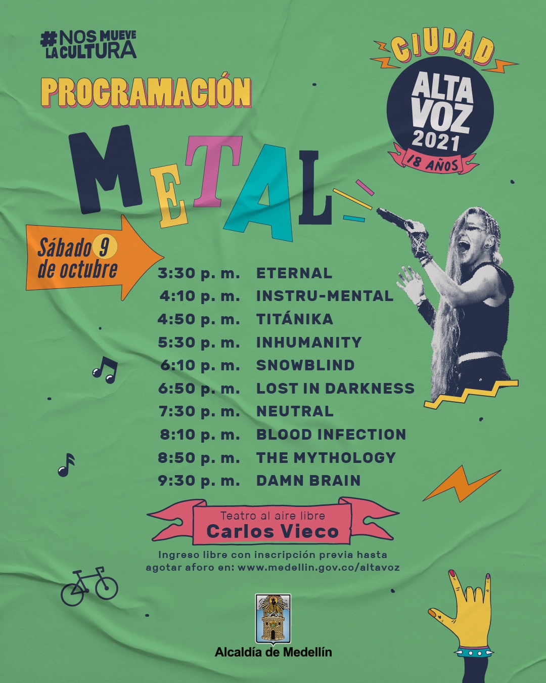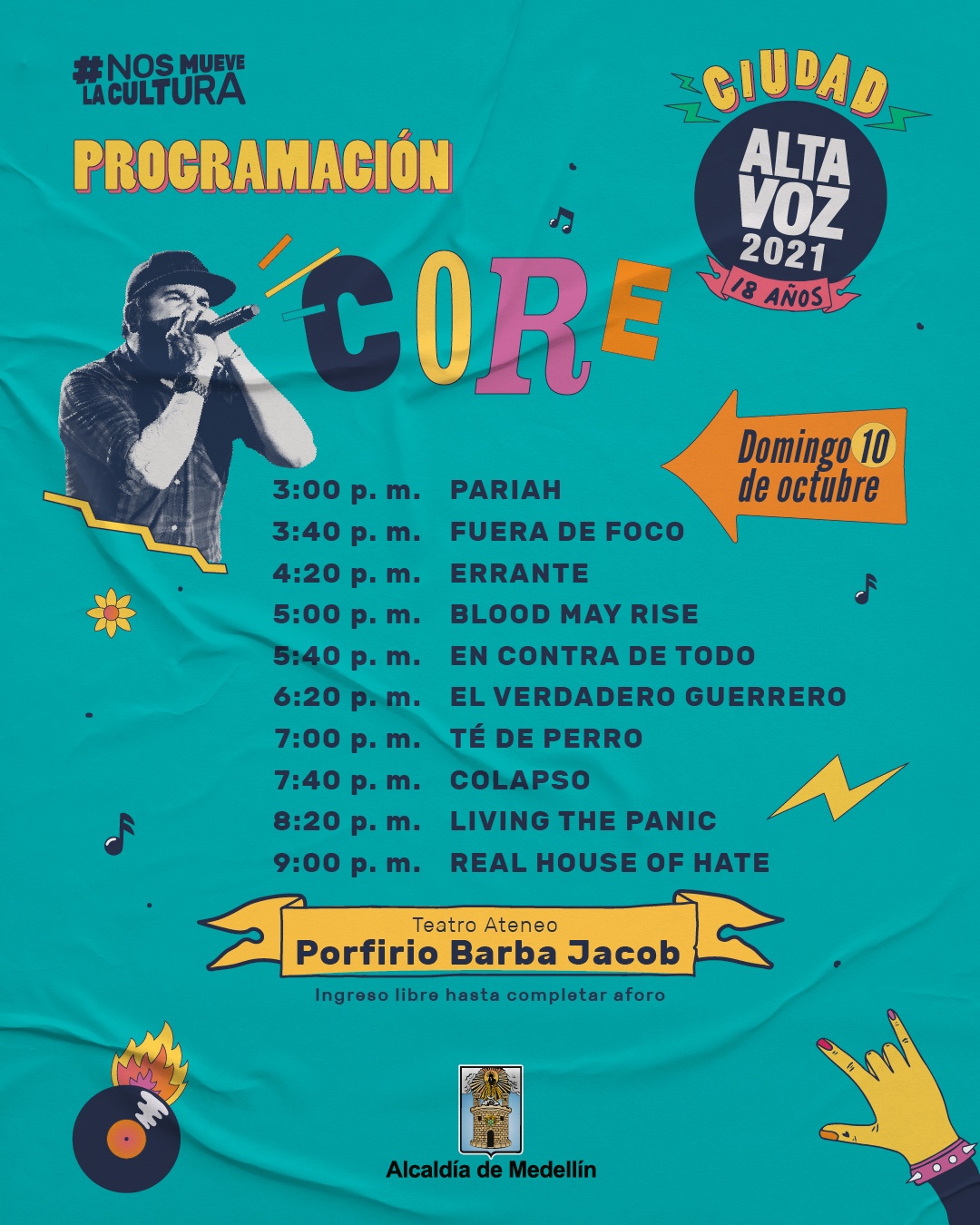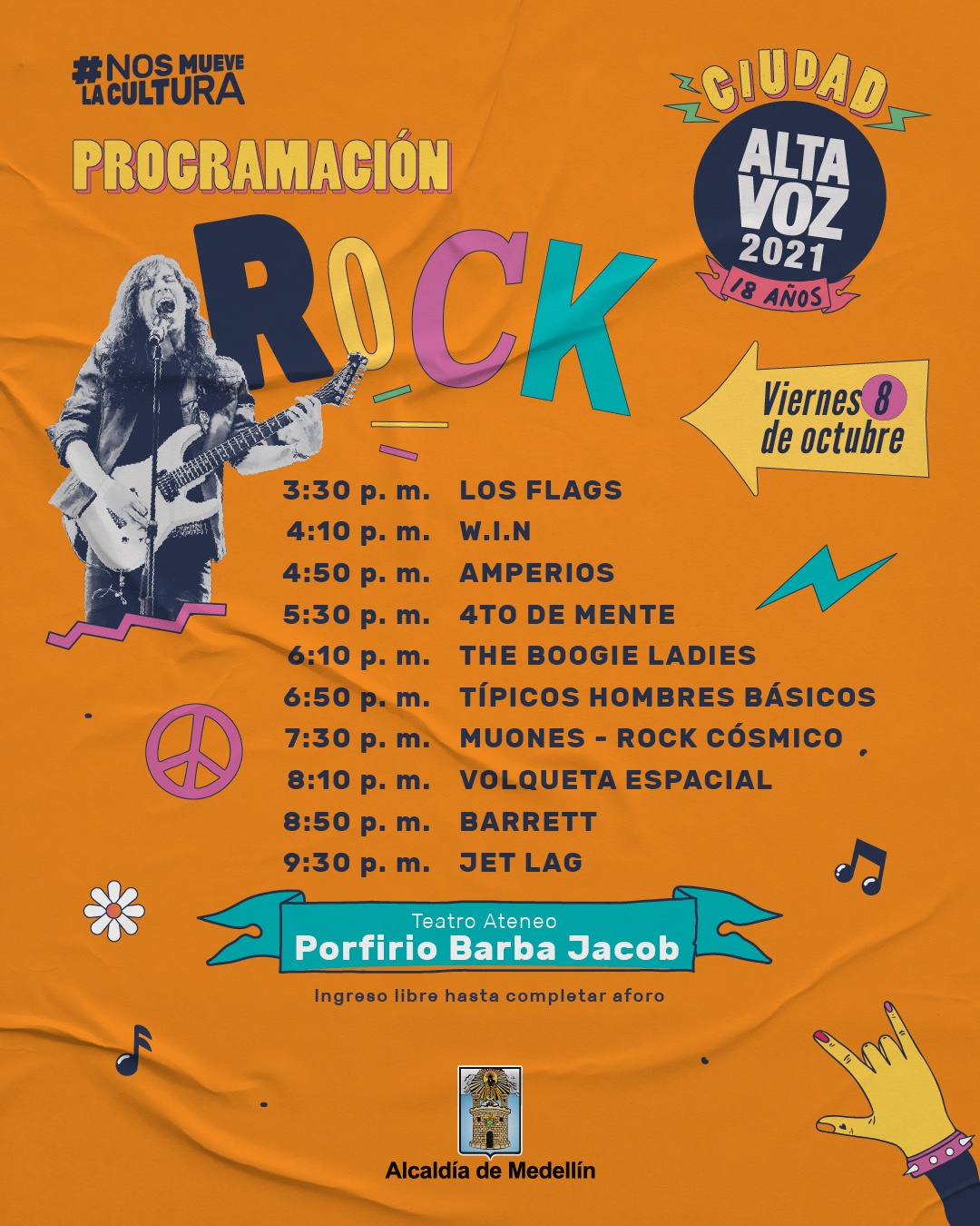 Como dato no menor, y de importancia significativa para los rockeros de la ciudad, después de siete años regresa el festival al Teatro al aire libre Carlos Vieco con una programación de punk, cuna del género en Medellín, evocando momentos que hoy vuelven a su escenario natural, mientras que en el Teatro Ateneo Porfirio Barba Jacob se disfrutará, en la primera jornada de rock.