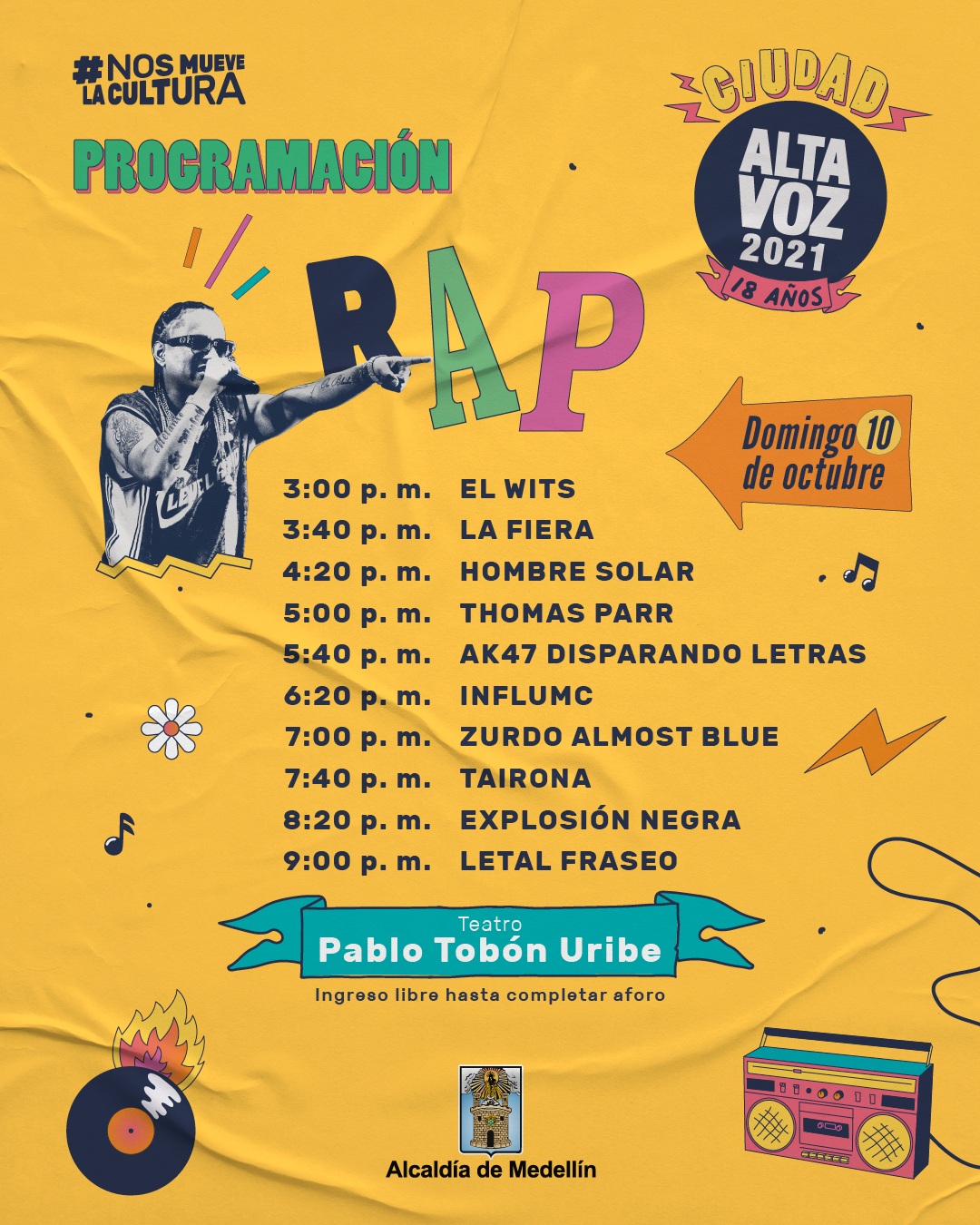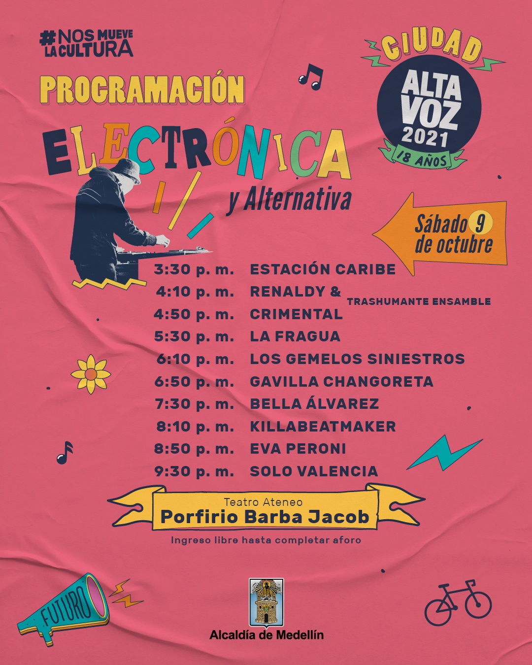 Las actividades de #CiudadAltavoz en el Teatro Pablo Tobón Uribe y en el Teatro Ateneo Porfirio Barba Jacob tendrán acceso gratuito, sin inscripción, con aforo controlado y conservando todas las medidas de bioseguridad.