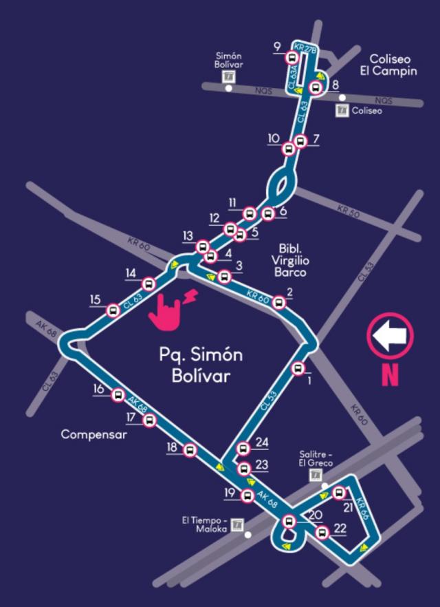 Esta ruta con 24 puntos de parada conectará al Parque Simón Bolívar con la estación Coliseo ubicada en la NQS y también con la troncal de la Avenida El Dorado.