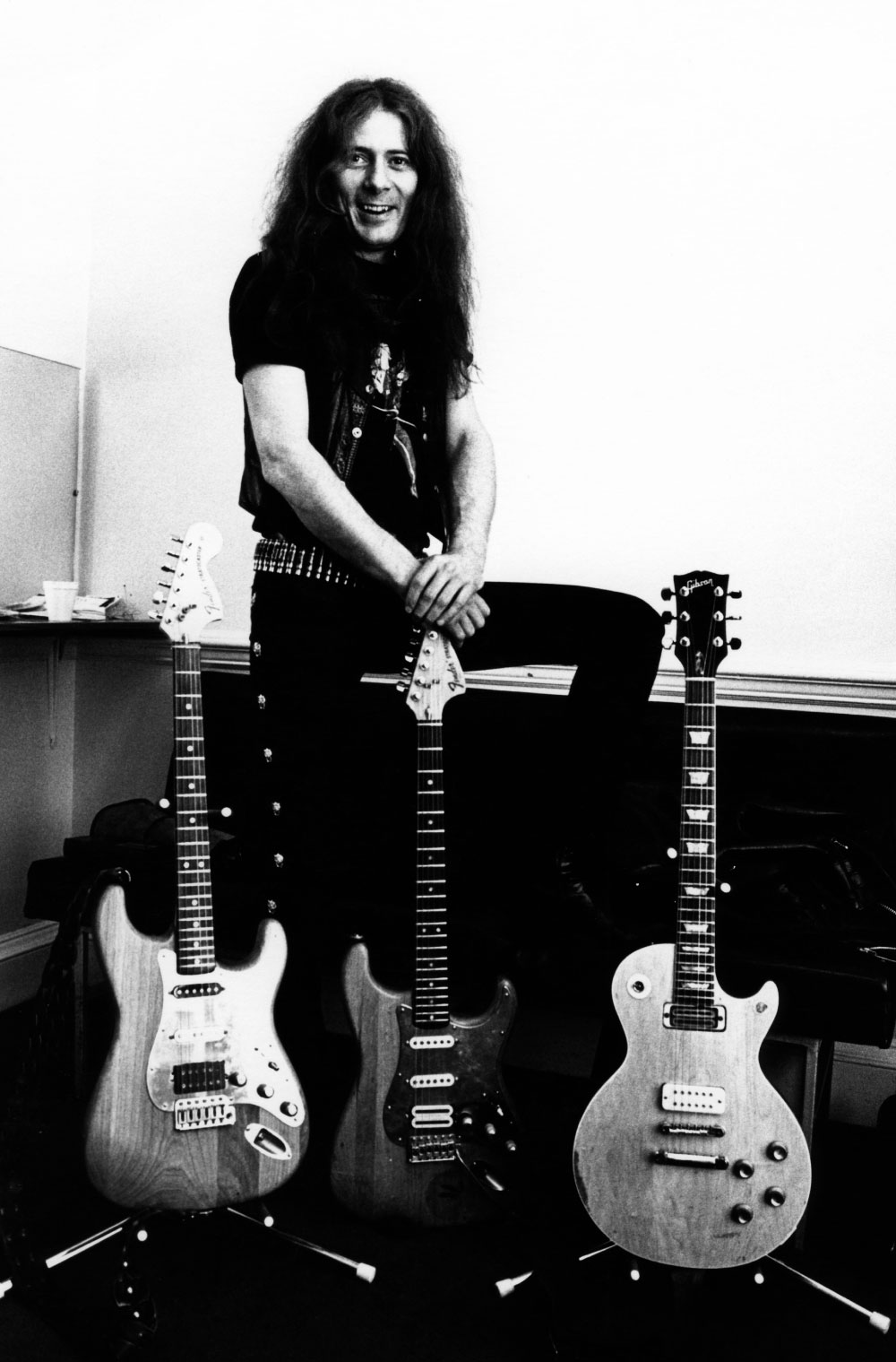 Eddie Clarke y sus guitarras. Foto de Fin Costello/Redferns