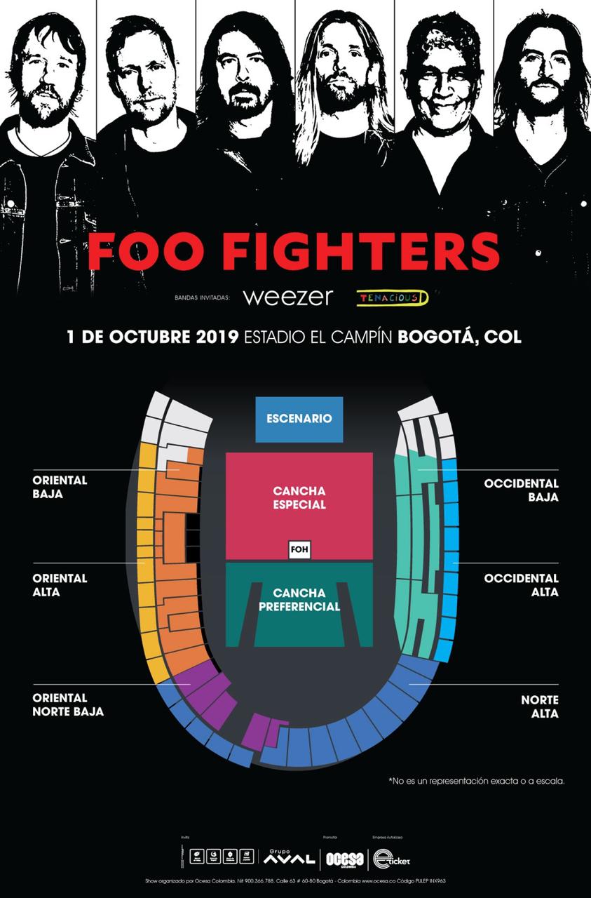 Los Foo Fighters tocarán el próximo 1 de octubre de 2019 en el Estadio Nemesio Camacho El Campín, mismo escenario que los recibió hace 4 años con cerca de 45.000 almas cantando sus canciones por primera vez en vivo.