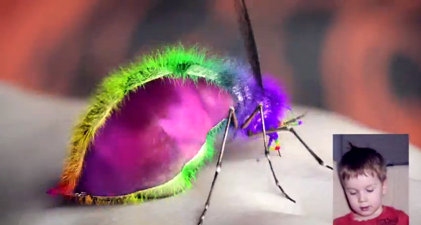 3 minutos y 10 segundos dura la secuencia en split screen en la que un mosco absorbe la mayor cantidad de sangre posible de su víctima, un niño, que atento a una pantalla, ignora al bicho que succiona el líquido de sus venas.