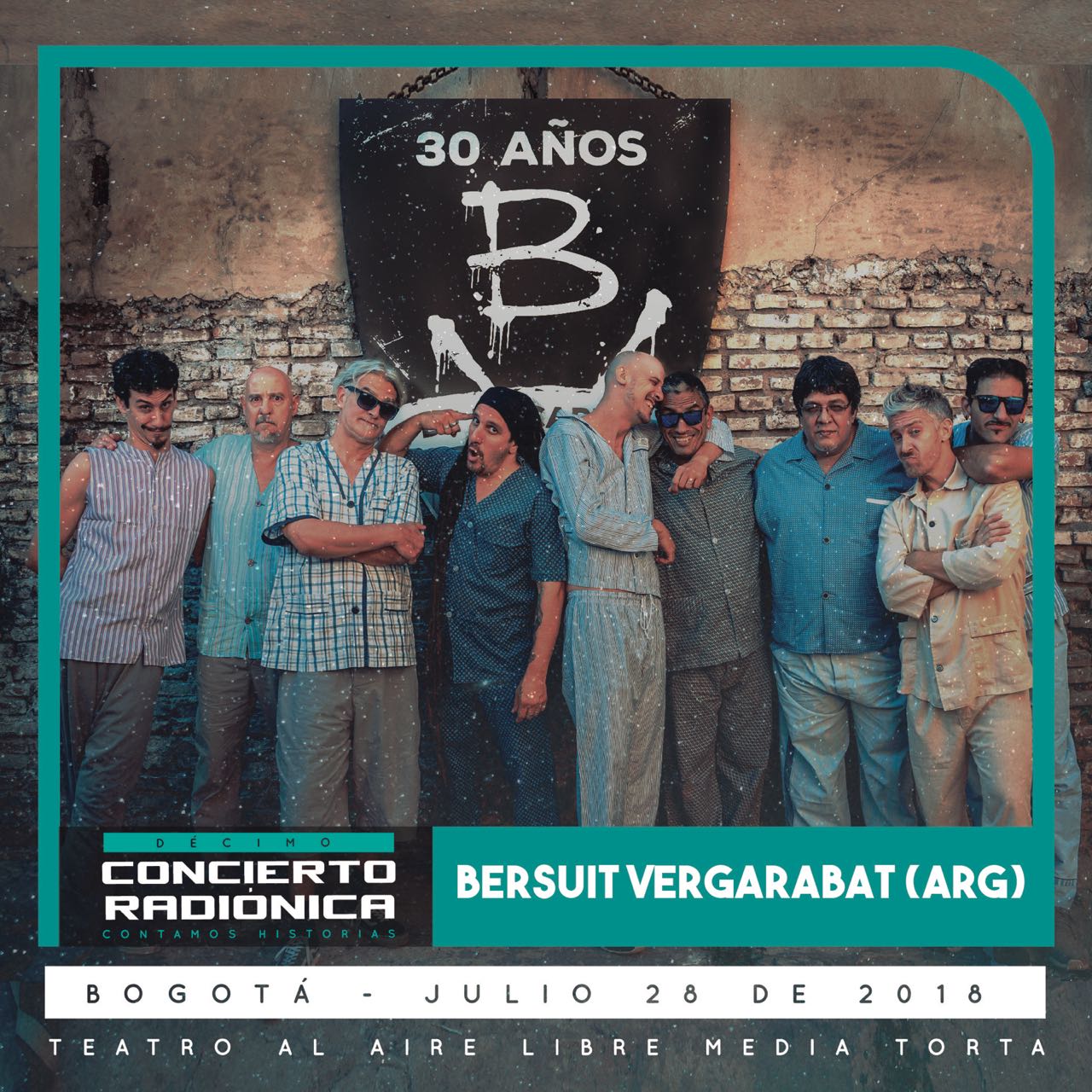 Este año tendremos el placer de celebrar los 30 años de la Bersuit Vergarabat en el Décimo Concierto Radiónica. ¡Vamos todos a bailar a la Media Torta de Bogotá!