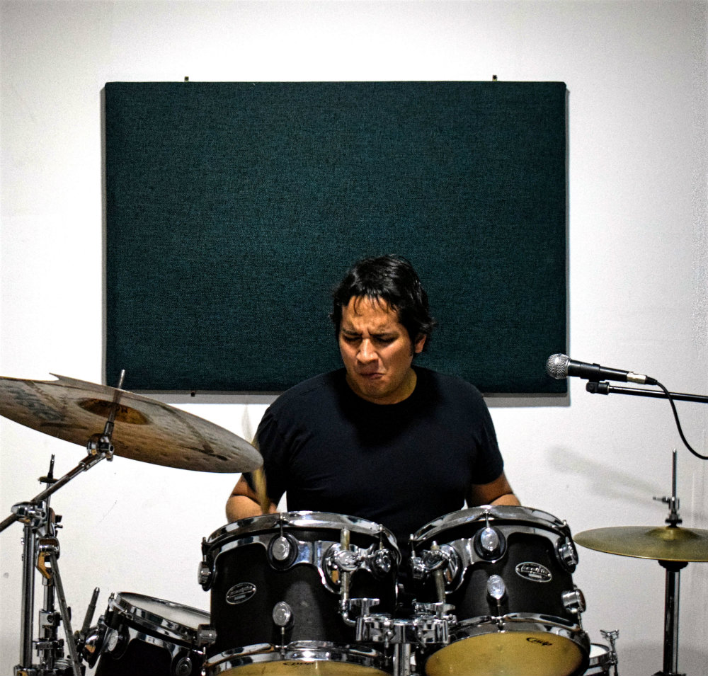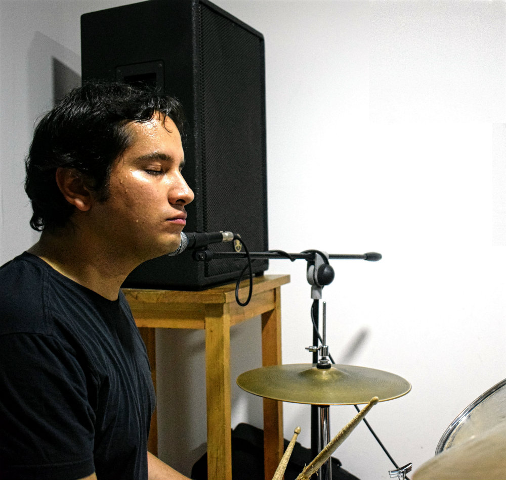 — Alta, ponele alta de una, sí. ¿si me entendés? — menciona Adolfo mientras acomoda los platillos a su alrededor. Abajo, en otra sala de ensayos retumban un bajo y un bombo.