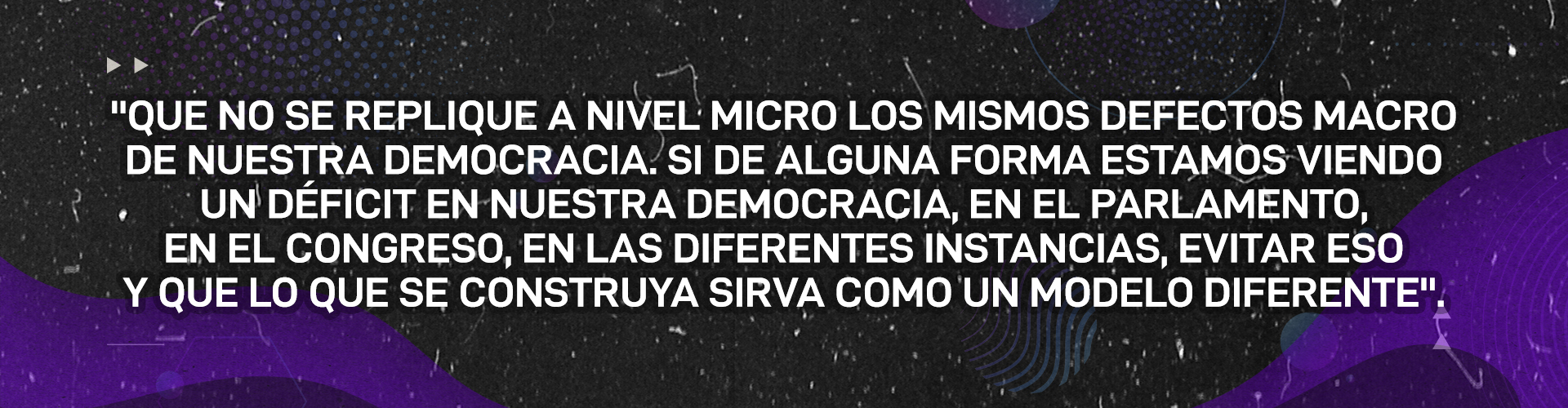 Para plantearlo mejor, que no se replique a nivel micro los mismos defectos macro de nuestra democracia. Si de alguna forma estamos viendo un déficit en nuestra democracia, en el parlamento, en el congreso, en las diferentes instancias, evitar eso y que lo que se construya sirva como un modelo diferente. Uno que pueda servir de ideal como un punto de comparación de cómo opera la democracia institucional y que nos permita crear una utopía, algo hacia lo cual aspirar que de pronto en micro lo podemos divisar más claro.