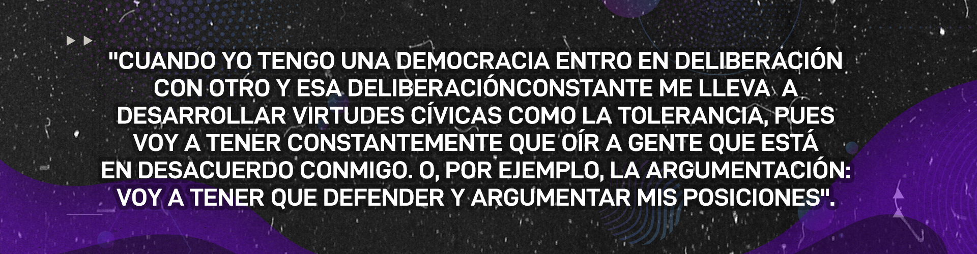En una sociedad democrática, bajo esta posición, lo que tiende a florecer son virtudes. Y volviendo a lo que usted me pregunta, ¿Cuál puede ser el problema en estos temas de representatividad frente al mismo funcionamiento de nuestro parlamento? Yo creo que puede responderse con otra pregunta de si la democracia está sirviendo a esas funciones o no: ¿Será que realmente tenemos ese tipo de representatividad que garantiza que todas las facciones están siendo representadas y que por lo tanto la decisión va a tender a acertar? ¿Será que estamos dando los espacios para que los ciudadanos participen? Que los jóvenes, los indígenas, las personas usualmente excluidas dentro de nuestra democracia, tengan esa posibilidad de deliberar directamente y desarrollar unas virtudes políticas y unas visiones que los acerquen, que les permita dirimir conflictos y lograr un estado de cosas donde haya concesiones y se logre de alguna manera esa idea de que todos se sientan colegisladores.