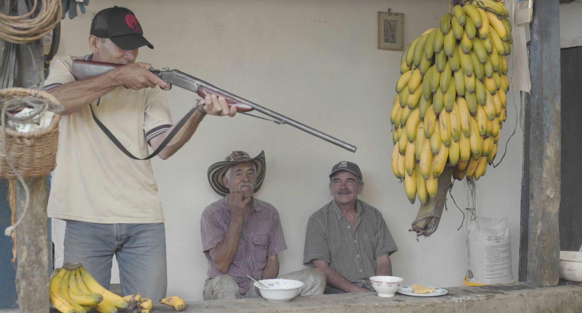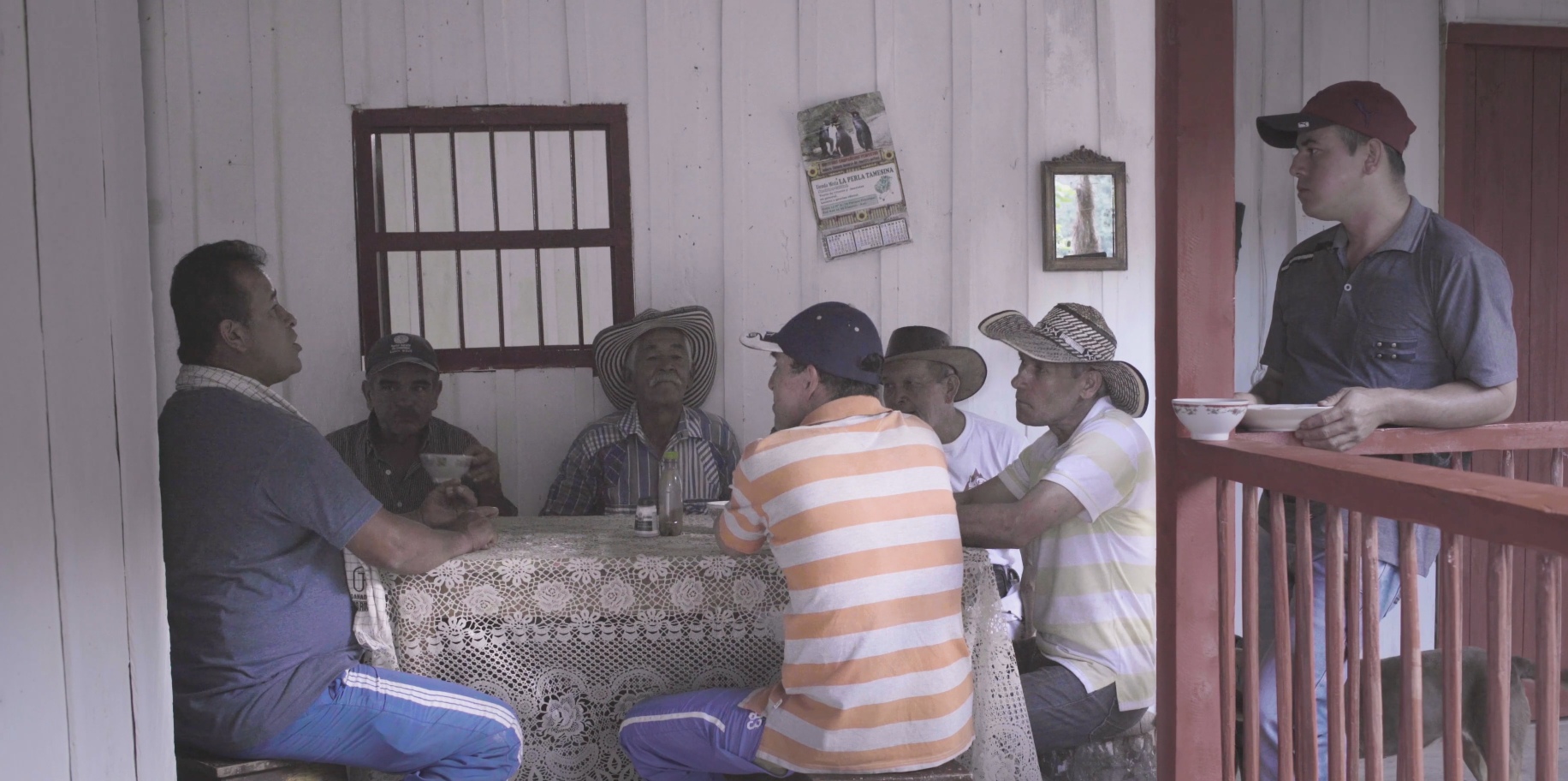 Es el exotismo del campo y esa romantización desde la ciudad. Pensar que es fácil y el campo colombiano no lo es. Es necesario reflexionar también en esas formas como nos retratamos. Yo tenía muchas imágenes, mucha tierra, muchos cultivos, cafetales, arracachas, pero pensé que esto le quitaba la atención a lo que realmente quieres decir. Yo quiero hablar de la amenaza, de los líderes sociales, yo quiero hablar de lo que significa poner la cara en un país como Colombia. Esto es una comunidad entera hablando. Por eso las tomas, casi todas, son desde afuera, a la distancia, no primeros planos viéndole la arruga al señor o la piel quemada por el sol y el trabajo.
