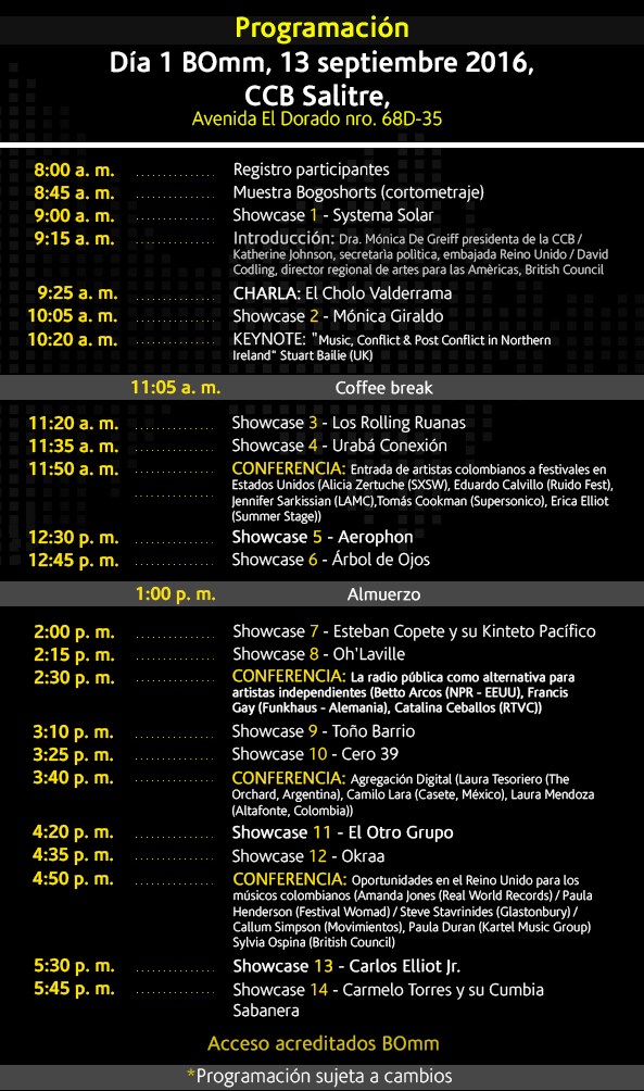 El Bomm se viene realizando desde el 2013, si tienen preguntas, quieren conocer la programación de la edición 2016 y estar pendiente de la publicación de los Showcases, solo deben visitar la página oficial: bogotamusicmarket.com