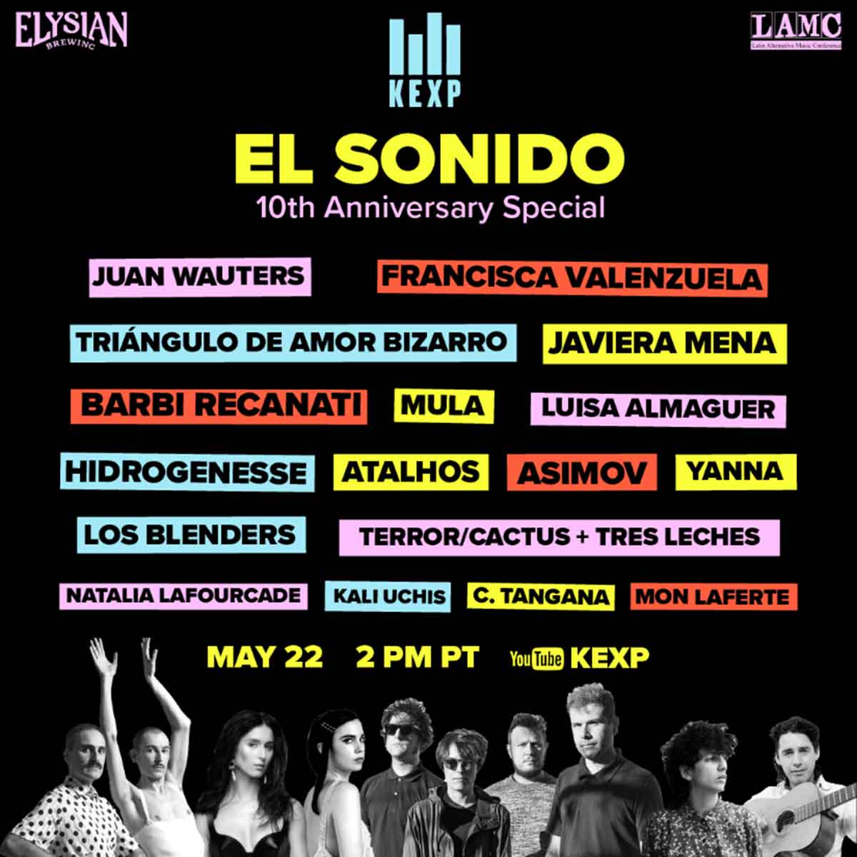 Resulta que “El Sonido” está cumpliendo diez años, por lo que hoy sábado 22 de mayo, KEXP estará presentando una edición especial. Se trata de un festival que cuenta con diecinueve artistas representando a diez países, incluidas trece presentaciones en vivo y cinco entrevistas exclusivas con figuras clave de la música en español.