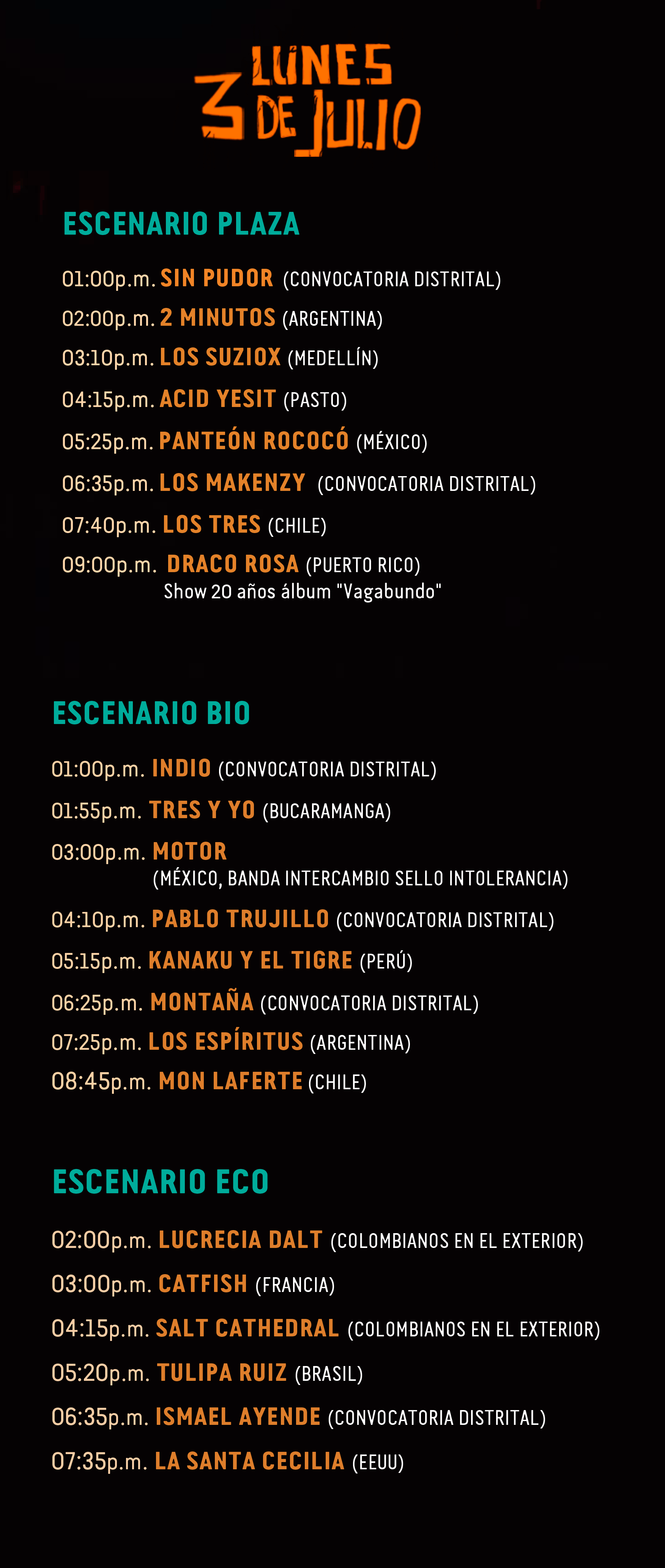 Después de 70 mil personas durante la primera jornada y 50 mil en un segundo día cargado de rock, reggae, punk, ska, hardcore, nuevas tendencias, post rock y fusiones rítmicas, la tercera jornada del festival al aire libre y gratuito más grande de Colombia dio inicio.