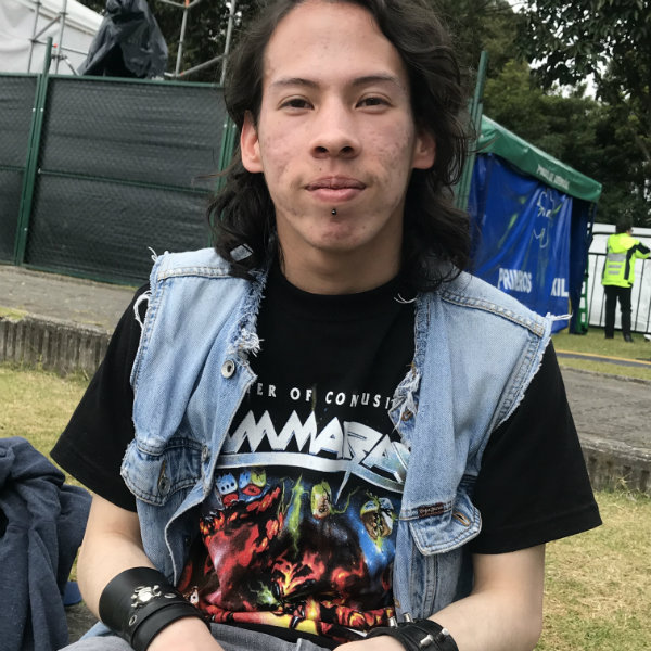 Vengo de Fontibón, este es mi primer Rock al Parque, y vine porque ya es justo y necesario, es una cultura, todo rolo tiene que venir acá; es triste que viene gente de Argentina, Perú y otros países y uno estando acá sin venir. Ya se me hace justo, así que esta vez vengo a acompañar a una compañera de trabajo que ya es más que compañera, es una parcera, ella fue la que me convenció de venir a ver a a Angelus Apatrida, aún no sé si voy a venir los demás días, pero quiero ver a La Tokio, la banda japonesa.
