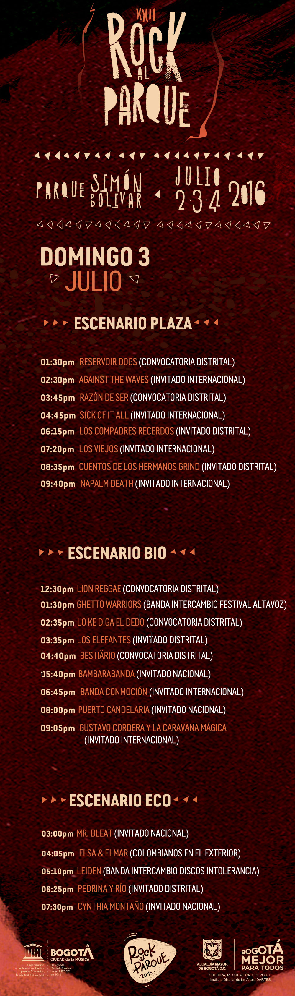 Conozcan las bandas invitadas que faltaban por anunciar, los horarios y los escenarios por día. ¡Bienvenidos una vez más al Festival Rock Al Parque!