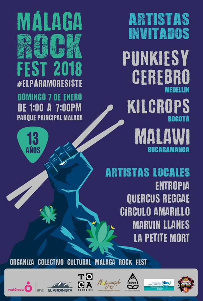De este modo, el próximo 7 de enero de 2018 será recordado como el día en el que las bandas Punkies y Cerebro de la ciudad de Medellín, Kilcrops de Bogotá y Malawi de Bucaramanga pondrán a vibrar a Málaga gracias a los saltos, el pogo, las guitarras y la buena vibra que acompañará la jornada. Junto a ellos estarán también las bandas locales Entropía, Círculo Amarillo, Quercus Reggae, Marvin Llanes y La Petite Mort.